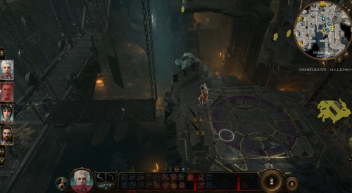 Расправившись с двергарами, снова побеседуйте с роте и попросите их все же убрать завал. Пройдите в возникший проход, перепрыгните через ловушки или деактивируйте их, и доберитесь до первой лесенки слева. Спуститесь по ней вниз, и вы окажитесь на площадке с двумя рычагами (Х: -639; Y: 414).