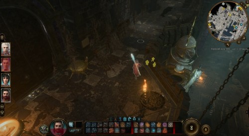 Бегите этими двумя бойцами на юг (S), заберитесь на выступы и возле трупа юстициара поднимитесь по лестнице наверх к еще двум рычагам (Х: -607; Y: 321) и Форме для скимитара. Оставьте здесь третьего персонажа.