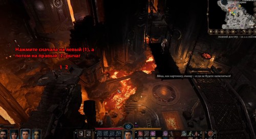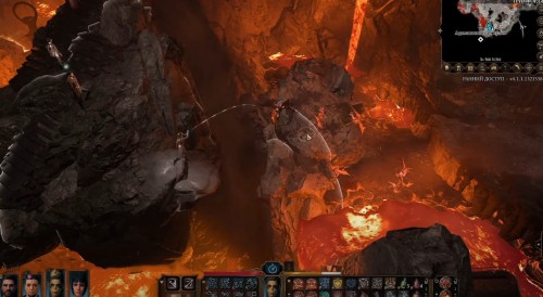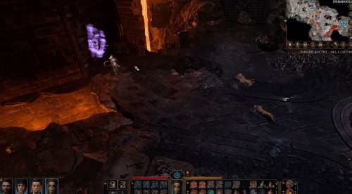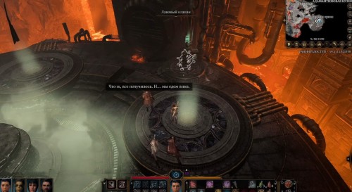 На следующий ход используйте Туманный шаг, чтобы телепортироваться подальше от Грима, а затем вторым персонажем нажмите на рычаг кузни. В результате молот рухнет прямо на босса, снеся у него 120-140 единиц здоровья. Далее расправьтесь с группой магматических мефитов, которые появятся на западе (для этого вам и понадобятся находящиеся там два члена отряда).