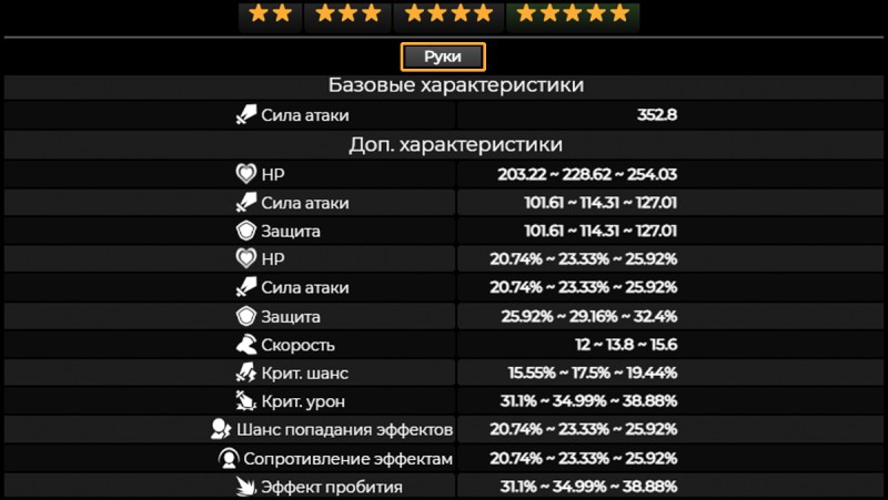 Теперь обратим внимание на варианты верхних и нижних статов, которые могут выпасть как на 0+ уровне (при получении реликвий), так и с прокачкой. Все числовые показатели прописаны для артов золотой редкости.