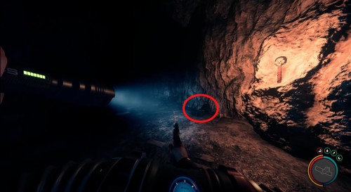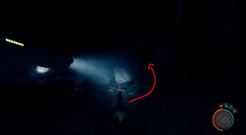 Вскоре вы увидите небольшой отблеск от руды на стене с правой стороны (первый скриншот ниже). Заметив этот свет, двигайтесь в его сторону. Здесь вы обнаружите небольшой проход, в который необходимо войти.