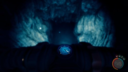Через пару метров вы доберетесь до кармашка с водой. Нырните в него и, используя акваланг, доплывите до другого конца – нужно просто плыть прямо, мимо скелетов. Вынырнув, идите дальше, разобравшись с еще одним мутантом.