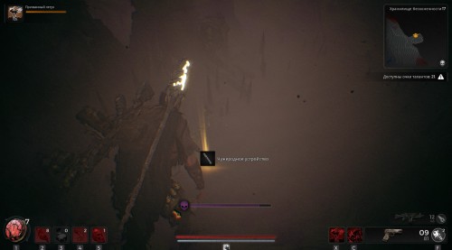 После этого спрыгните на дно ущелье, чтобы отыскать Чужеродное устройство (иногда оно лежит на теле, из-за чего спускаться вниз уже необязательно). Делать все это нужно быстро, пока фиолетовая полоска полностью не заполнилась – в этом случае вы тут же погибните.
