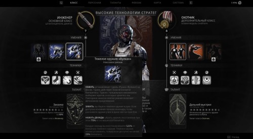 Данный класс заточен на использование тяжелого вооружения, причем его можно как устанавливать рядом с собой в виде турелей, так и брать в руки. В основном он направлен на нанесение урона на ближней/средней дистанции. Учитывая частое столкновение с врагами, он также может повышать прочность своей брони.