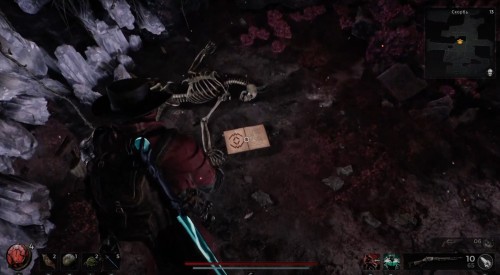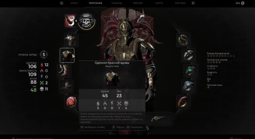 В конце коридора вы обнаружите саркофаг. Отройте его и достаньте полный комплект Красной Вдовы, который дает 89 единиц брони, а также сопротивление к кровотечению (12), порче (11) и разложению (2). Его вес составляет 48 единиц (средний).