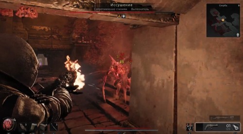 Теперь вам нужно открыть гробы, расположенные в предыдущей комнате, – в одном из них окажется мини-босс по имени Иссушение. У него имеются черты рядовых мобов, встречающихся в данном подземелье. Отличается же он от них только повышенной полоской здоровья. Когда его HP упадет почти до нуля, из его тела вылетит дух, которого нужно сразу же убить, иначе монстр возродится.