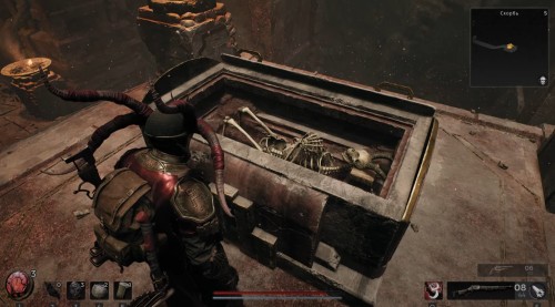 Осмотрите саркофаг, чтобы найти Магнитную корону (неплохо защищает от порчи), которая светится в темноте, выполняя функцию не только защитного снаряжения, но и фонаря.