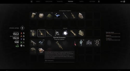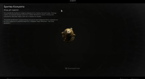 Откройте инвентарь, найдите там Бритву Колькета и войдите в режим осмотра. Затем поверните ее задней стороной, как показано на второй картинке ниже, пока не появится кнопка взаимодействия. Нажмите на нее, и вы получите Ключ Колькета, который потребуется вам ближе к концу исследования подземелья.