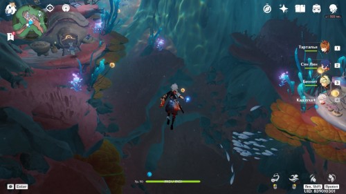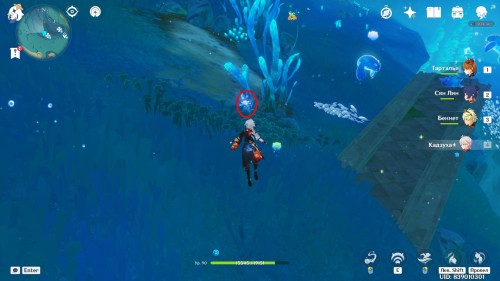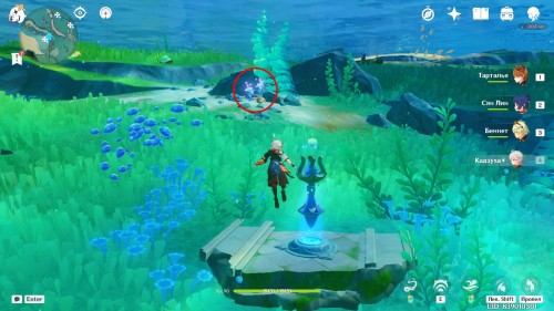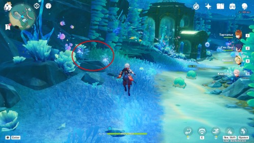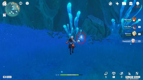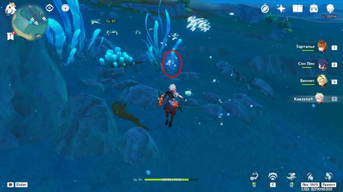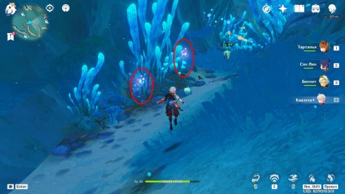 Следующая часть фарма будет проходить под водой. Отправляйтесь в Элтонскую впадину. От телепорта проплывите на юг к Усыпальнице глубин, расположенной на дне ущелья. Там вы найдете три цветка.