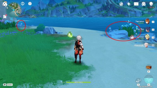 Обязательно возьмите в отряд героя, владеющего стихией воды, так как ромарины, находящиеся на суше, можно сорвать только после воздействия гидро. Также рекомендуем вам собирать их ночью, поскольку легкое свечение цветов будет заметнее ночью.