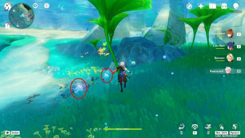 При помощи данного инструмента вы сможете значительно упростить себе поиск гидрокулов в Фонтейне, так как он будет отмечать местоположение ближайших к вам Гидро частиц.