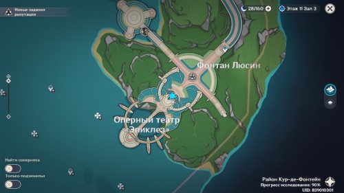 Демонстрирует все ближайшие местные диковины Фонтейна на мини-карте. |