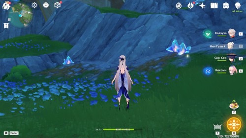 Зафармив предыдущую точку интереса, пройдите на запад и заверните за скалу, с которой видно загадочное поле с фиолетовой печатью: тут можно собрать еще 4 кристалла.