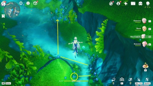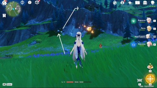 От телепорта поверните в сторону деревни Меруси: на пути к поселению будет небольшая локация, в которой можно встретить Косынзяну. Здесь вы сможете зафармить 6 Конденсирующихся кристаллов.