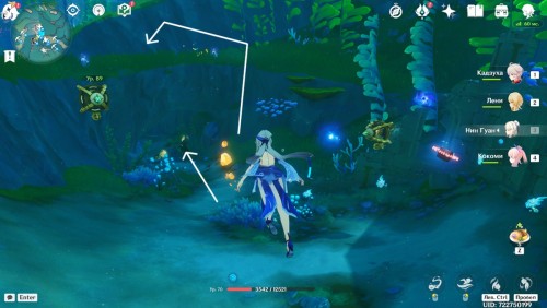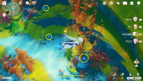 Плывите по подводному маршруту на восток: первое место сбора с тремя залежами вы отыщите недалеко от телепорта.