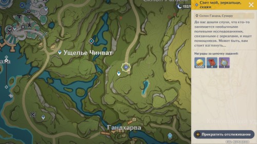 Для его прохождения вам необходимо будет отыскать исследовательницу из Сумеру по имени Ламия, которая проводит странные полевые исследования, связанные с зеркалами. Девушка будет ждать вас на склоне Гандха.