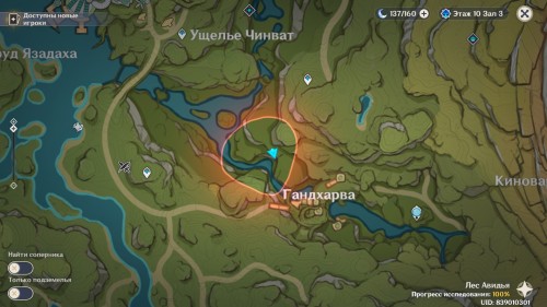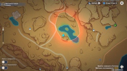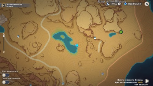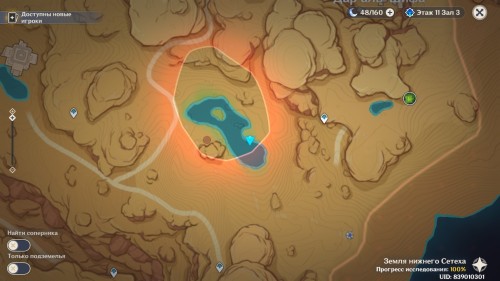 Следующая часть испытаний будет проходить в Землях нижнего Сетеха рядом с озером. Добраться туда вы с легкостью сможете от телепорта, расположенного рядом с дендро гипостазисом.