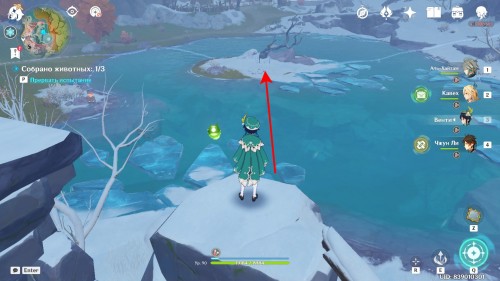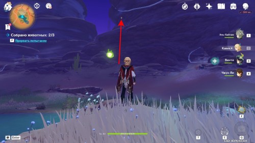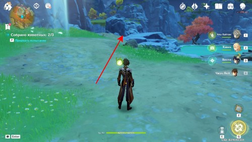 Кристо забрался довольно высоко в горы, чтобы понаблюдать за хиличурлами. От центра области идите по тропинке на запад. Когда вы дойдете до развилки, начните карабкаться на возвышенность по левую сторону от вас. Наверху на уступе вы и найдете любопытного лиса.