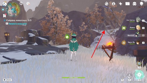 Лис Эш спрятался прямо в хижине хиличурлов, расположенной на юге области.
