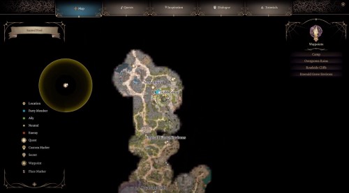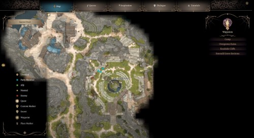 Впрочем, можно самостоятельно отправиться в необходимую область. На картинках выше показано расположение каменной двери (X: 229, Y: 521) в Священном пруду, которую нужно открыть, чтобы оказаться в Изумрудной роще.