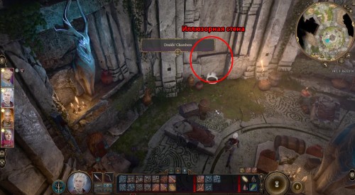 Спуститесь по лестнице вниз и посмотрите кат-сцену с пленницей и змеей. Затем откройте вторую каменную дверь на другой стороне помещения, чтобы попасть в Покои Друидов. В ее северной части, справа от статуи оленя пройдите прямо через каменную стену – она тут же исчезнет, открыв тайный проход.