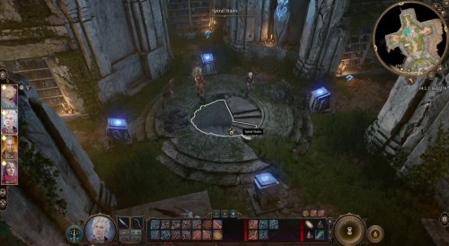 Теперь вам нужно взаимодействовать со всеми четырьмя пьедесталами, чтобы они загорелись синим светом. Судя по всему, порядок не важен, однако мы на всякий случай укажем вам свою последовательность: руна волка, руна орла, руна медведя и руна лося. Если вы все сделали правильно, то статуя в центре исчезнет, и вместо нее появится винтовая лестница.