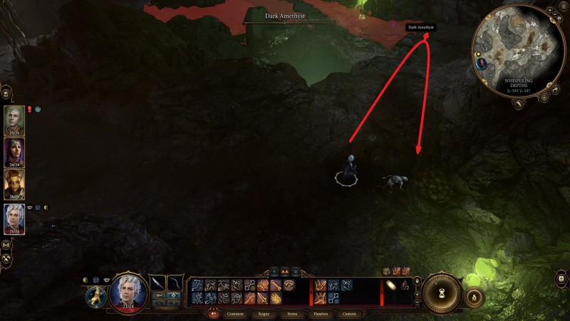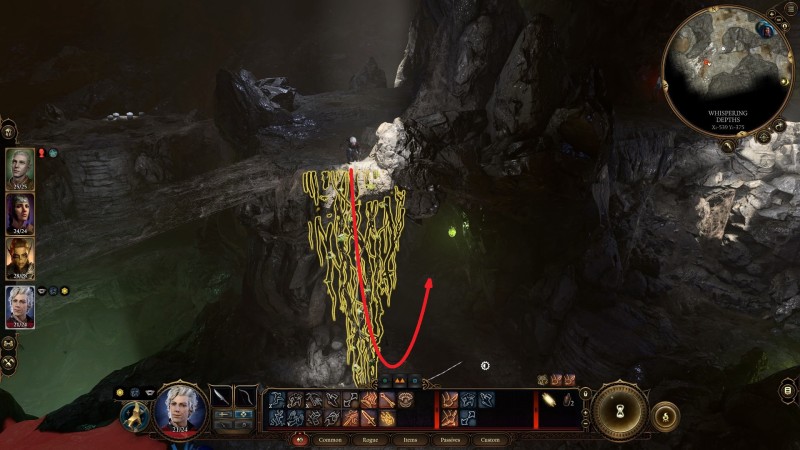 Но можно пройти до цели и без боя. Искомый самоцвет расположен на нижнем ярусе под кладкой паучьих яиц, добраться туда можно в режиме незаметности, просто подождав, когда паучиха отвернется.