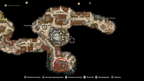 Нужный нам магазин находится недалеко от рунного круга «Центральная стена Нижнего города».