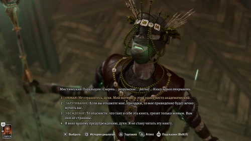 При взаимодействии с томом в подземелье начнется диалог, в котором перед командой встанет вопрос о дальнейшей судьбе книги: