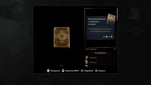И можно оставить Некромантию Тхая у себя, решив заняться ее загадкой самостоятельно. Для этого потребуется найти ключ-самоцвет, подходящий к «замку» на обложке тома.