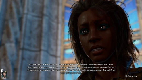 Необходимо подыграть ей и говорить только шепотом, в противном случае придется раскошелиться для продолжения разговора (400).