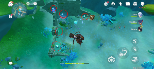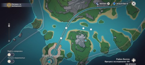 Этих существ можно найти на дне большей части водоемов Фонтейна. Мы предлагаем вам поискать их неподалеку от Порта Ромарин. Под каждой меткой на изображении ниже скрывается по паре крабов, так что, проследовав по данному маршруту, вы сможете завершить испытание по уничтожению не только пяти Инородов Фонтмера, но и семи обычных подводных монстров.