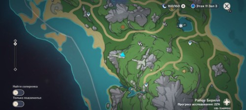 Третьи руины находятся на востоке. Соберите гидрогранумы – один из них находится в следующей комнате, рядом с патрульным руин, так что будьте осторожны. Когда образуется Гидро ядро, подойдите к кристаллам разведки уровня Гидро, и решетка под вами исчезнет. Фея тут же улетит, а вы сможете войти в поток и вернуться к разблокированному сокровищу.