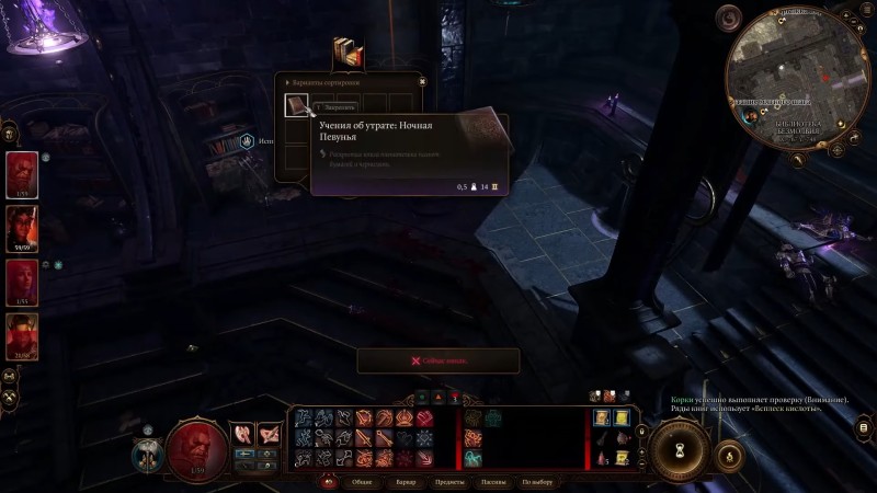 Ворвавшись в библиотеку, можно сражу перейти в режим скрытности – так вы сможете занять выигрышные позиции для предстоящего боя. Сфокусируйте атаки на темной сфере, плавающей в центре помещения, и вы сможете избавиться от эффекта немоты, как только она падет. Останется разобраться с немногочисленными прислужниками.