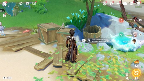 Затем подойдите к ящикам и ведру. Здесь должна будет появиться надпись: «Разбросанные обломки Спонсианы»