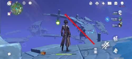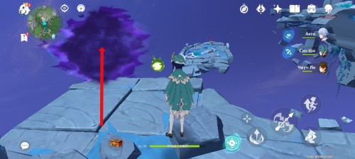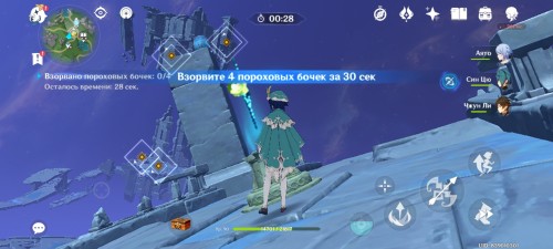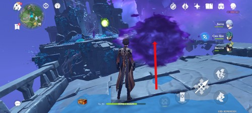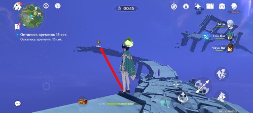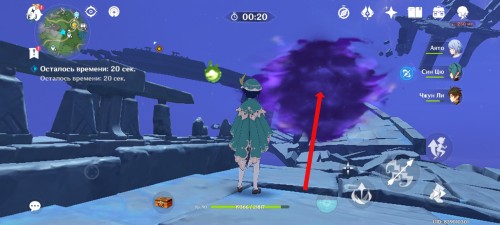 После предыдущего челленджа вам не стоит заходить в появившийся портал. Подойдите к западному краю моста. На платформе ниже вы увидите следующее испытание. В его рамках вам будет необходимо за 30 секунд открыть сундук. Вы можете добраться до него, последовательно войдя в три портала. Либо вы можете воспользоваться только первым, а потом добежать до сокровища по мосту.
