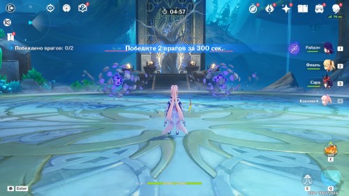 Если таймер истечет, а мобы все еще не убиты, то испытание будет считаться проваленным, поэтому вам придется начинать его с нуля. Чтобы ускорить убийство мобов, постарайтесь либо использовать энергию пневмусии, либо создавать Электро, Пиро, Крио и Гидро реакции для быстрого уничтожения щитов врагов.