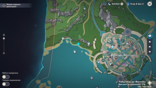 Гидро эйдолон может оказаться как на ближайшем выступе, так и прямо возле воды. Довольно часто его сопровождает Гидро слайм. Если вы недавно уже поубивали здесь всех фантазмов, то воспользуйтесь интерактивной картой Фонтейна для нахождения других водяных шаров.