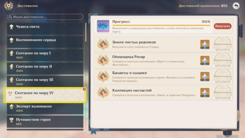 В Genshin Impact Скитания по миру 4 является коллекцией ачивок из раздела вытриигровых достижений, многие из которых добываются посредством собирания рукописей из Фонтейна. Данный раздел насчитывает 4 пункта, которые без проблем можно зафармить, даже не углубляясь в исследование Гидро королевства. Этот гайд поможет вам узнать, как выполнить 100% прогресса этого набора.