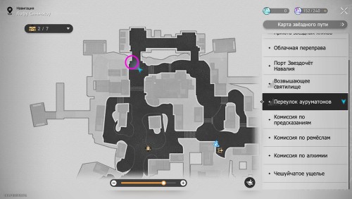 В данной области размещено 7 обычных ларцов, а сама карта достаточно небольшая. Предлагаем начать с пространственного якоря «Ночной рынок Переулка ауруматонов» и двигаться по круговой на восток.