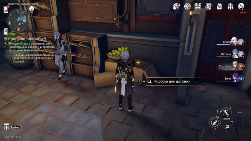 Телепортируйтесь к якорю «Ночной рынок», а потом бегите на юг и возле киоска тети Каланчи отыщите коробки, на которых стоит корзинка с яблоками. Взаимодействуйте с ними. Можете осмотреть посылку или уйти – оба варианта ничего вам не принесут.