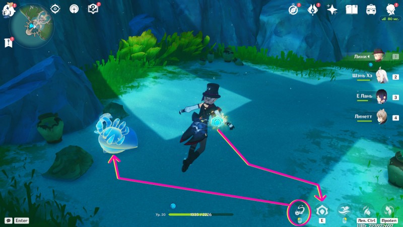 Также можно просто подплывать к кувшинам и делать короткое нажатие способности, после которого происходит удар по площади небольшого радиуса.
