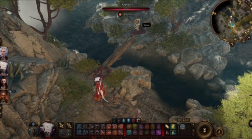 Естественно, первым делом вам нужно будет пригласить девушку в свой отряд. Сделать это можно уже в Акте 1. Для этого возьмитесь за выполнение побочной миссии «Клинок Фронтира», выдаваемой Уиллом и связанной с охотой на Карлах. Отыскать ее можно юго-восточнее квестового маркера – спуститесь по склону к реке и пройдите по бревну.