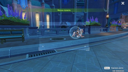 Идите на юго-восток Кур-де-Фонтейна. На том же уровне, на котором находятся Гильдия искателей приключений и оба ближайших телепорта, напротив модного дома Тиори вы увидите двух собак. Одно за другим сделайте фото Месье и Мадам пуделей.
