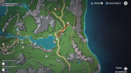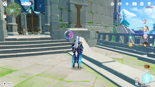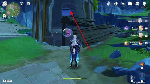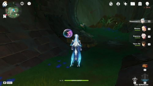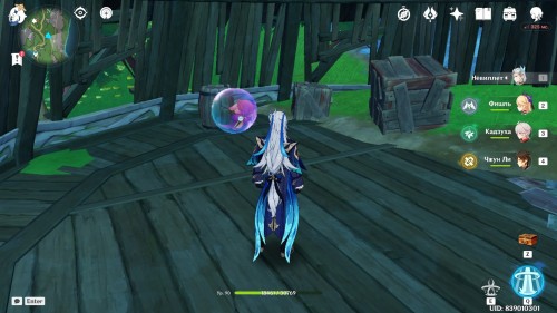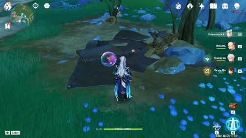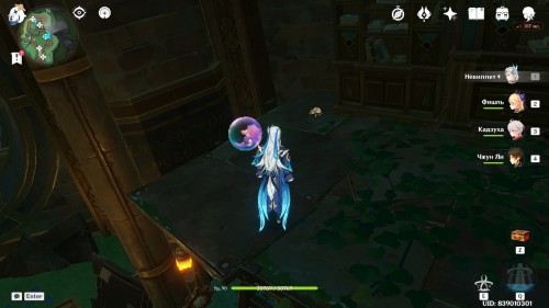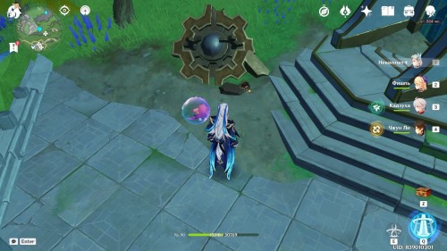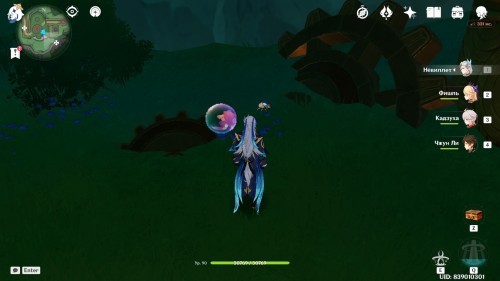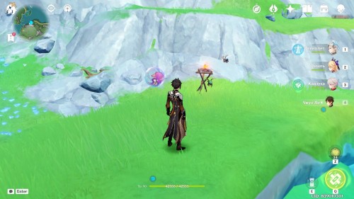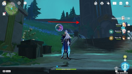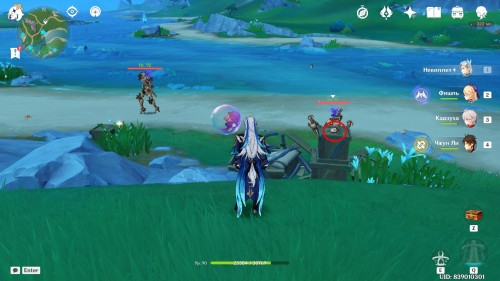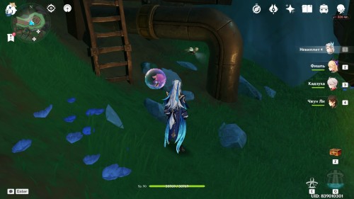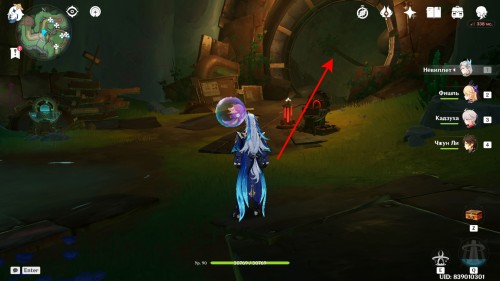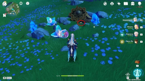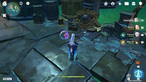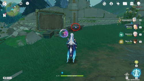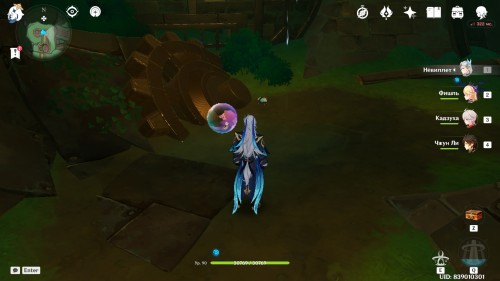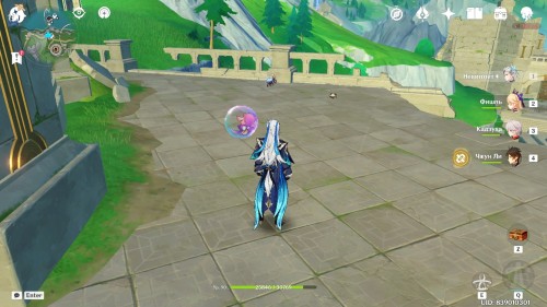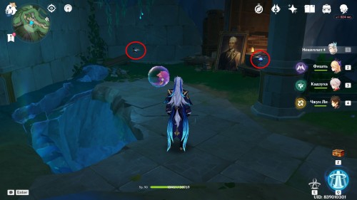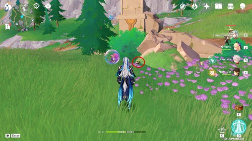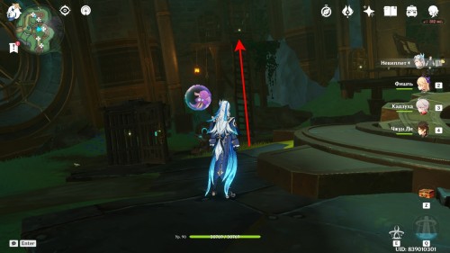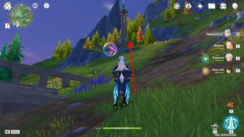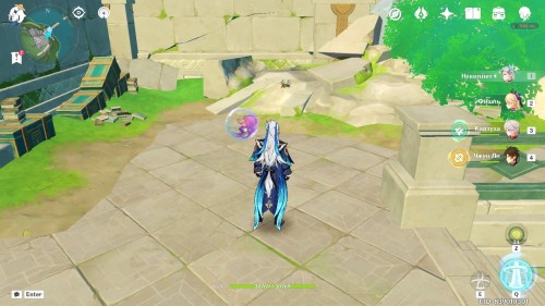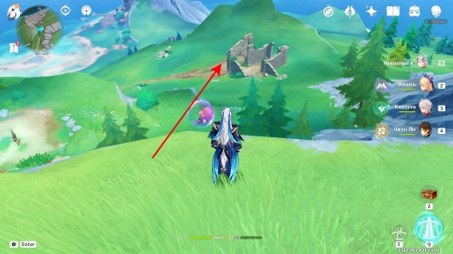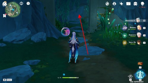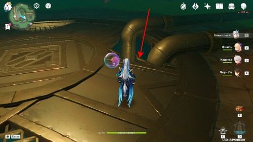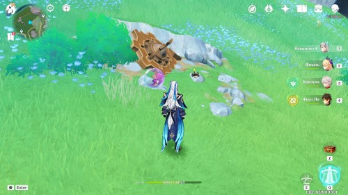 Подойдите к обрыву рядом с водопадом и летите к островам, расположенным около противоположного берега. На самом большом из них над ящиками около загадки со стабилизатором порхает нужное устройство. Будьте осторожны: рядом ходят несколько опасных оперативников Фатуи.