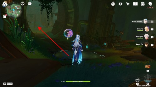 Демонстрирует все ближайшие местные диковины Фонтейна на мини-карте. |