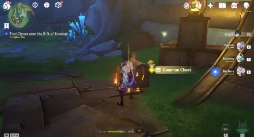 Выйдите из режима камеры и пройдите в южную часть текущей локации. Рядом с коробками вы обнаружите указатель. Взаимодействуйте с ним для появления обычного сундучка.
