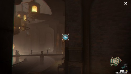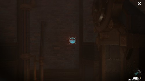 Телепортируйтесь на «Производственный участок: нижний уровень» и пройдите на восток к лифту, который движется наверх. Слева от него находится терминал – взаимодействуйте с ним для перехода к видеоискателю. Наведите камеру на рисунок шестеренки, потом посмотрите на красную лампочку для смены ракурса и гляньте на изображение второй шестерни вдалеке. В результате под ней появится белый огонек.