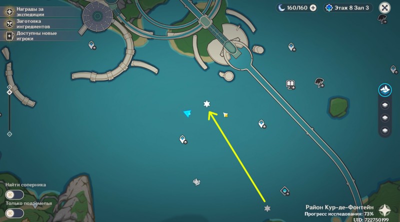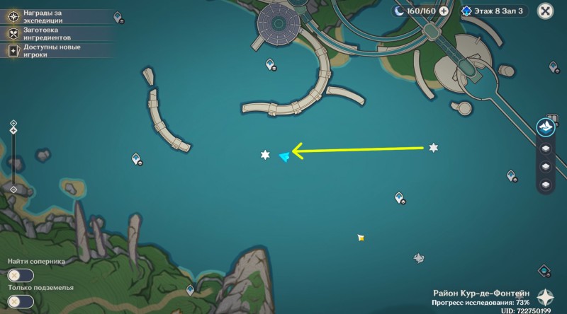 После зачистки предыдущего буйка, плывите к отмеченной точке на север и разберитесь с одним хиличурлом лучником.