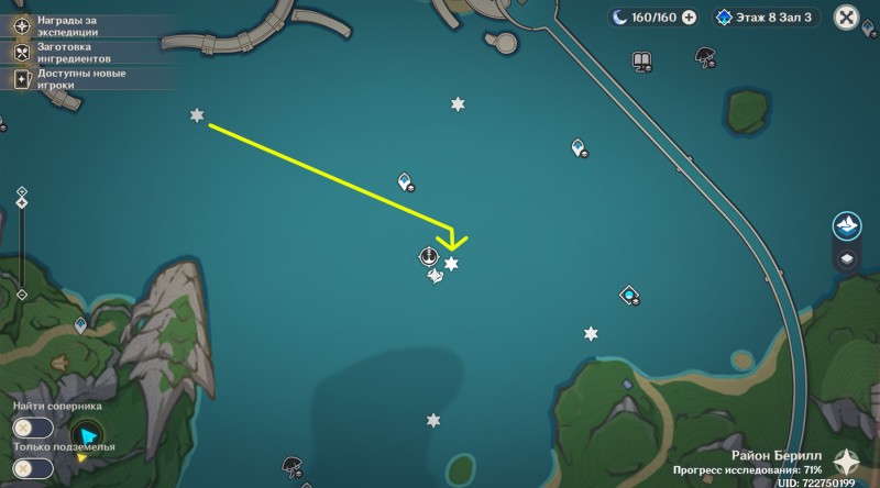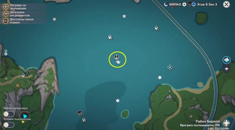 В завершении следуйте на юго-восток до якорной стоянки в центре водоема и победите последнего нарушителя – электро хиличурла-стрелка.